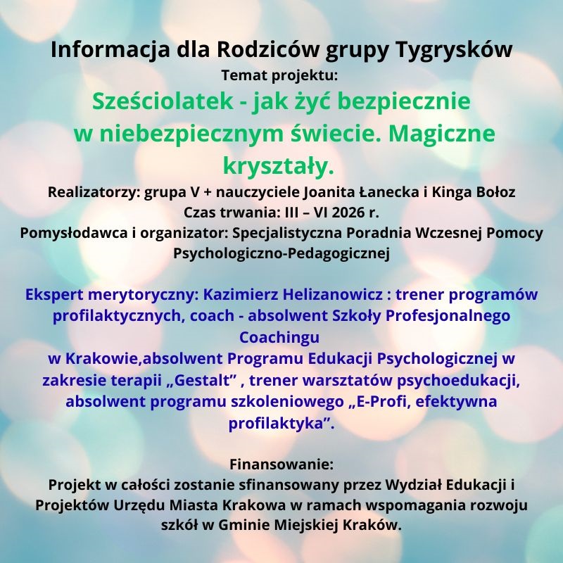 INFORMACJA DLA RODZICÓW DZIECI Z GRUPY TYGRYSÓW
